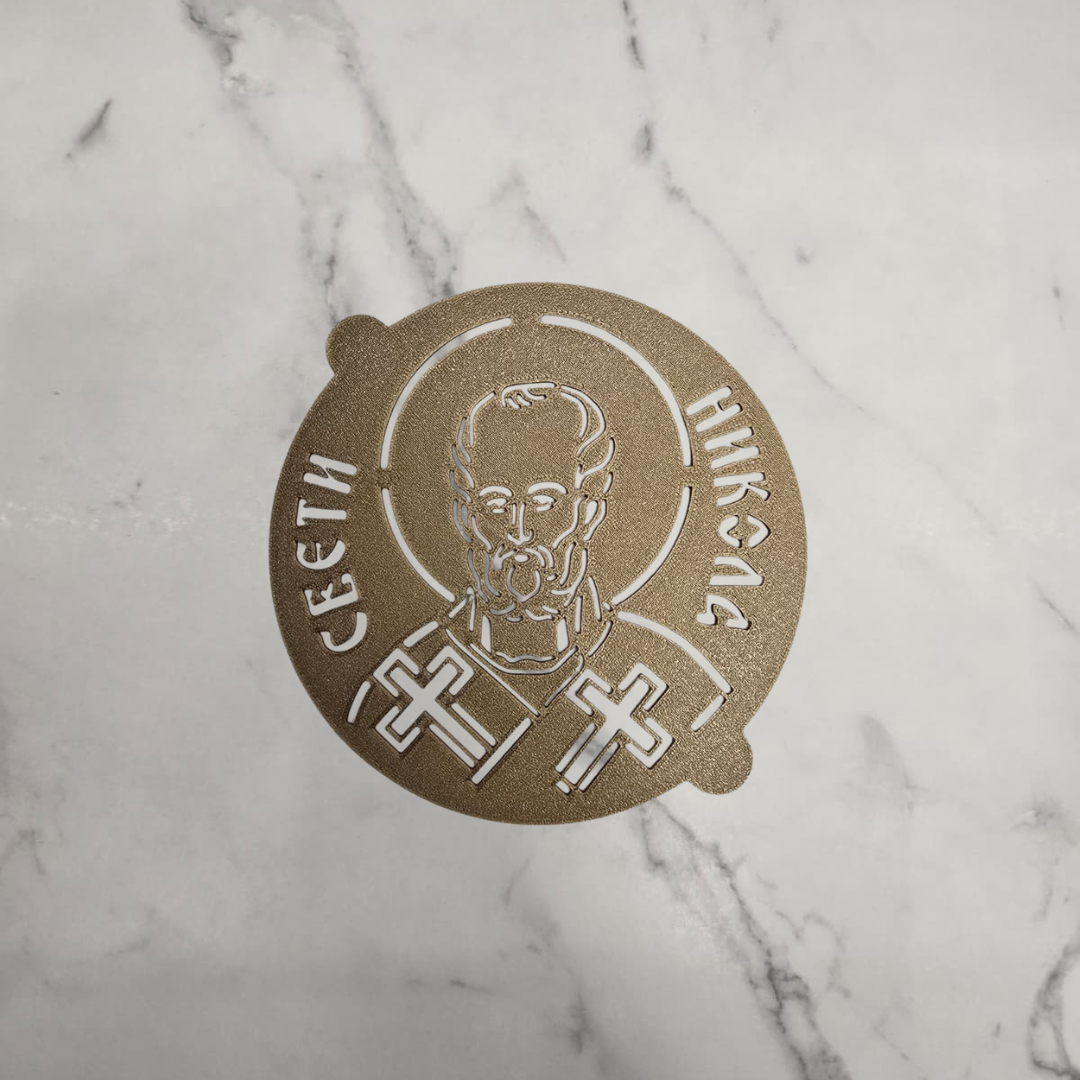 Šablon za žito sa motivom Svetog Nikole izrađen je preciznom 3D štampom kako bi svaki detalj bio jasan, uredan i ravnomerno otisnut. Idealan je za pripremu slavskog žita i dodavanje lepog, tradicionalnog izgleda vašoj prazničnoj trpezi.