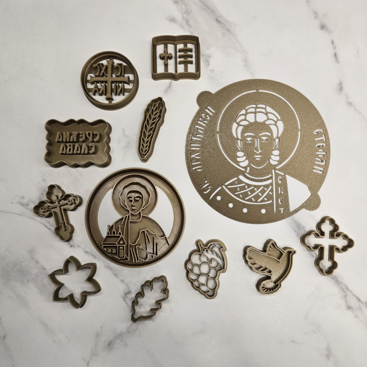 Ovaj set za slavu sastoji se od modli za slavski kolač i šablona za žito sa motivom Svetog Arhiđakona Stefana. Svi proizvodi izrađeni su preciznom 3D štampom kako bi se dobio čist, jasan i ujednačen otisak.